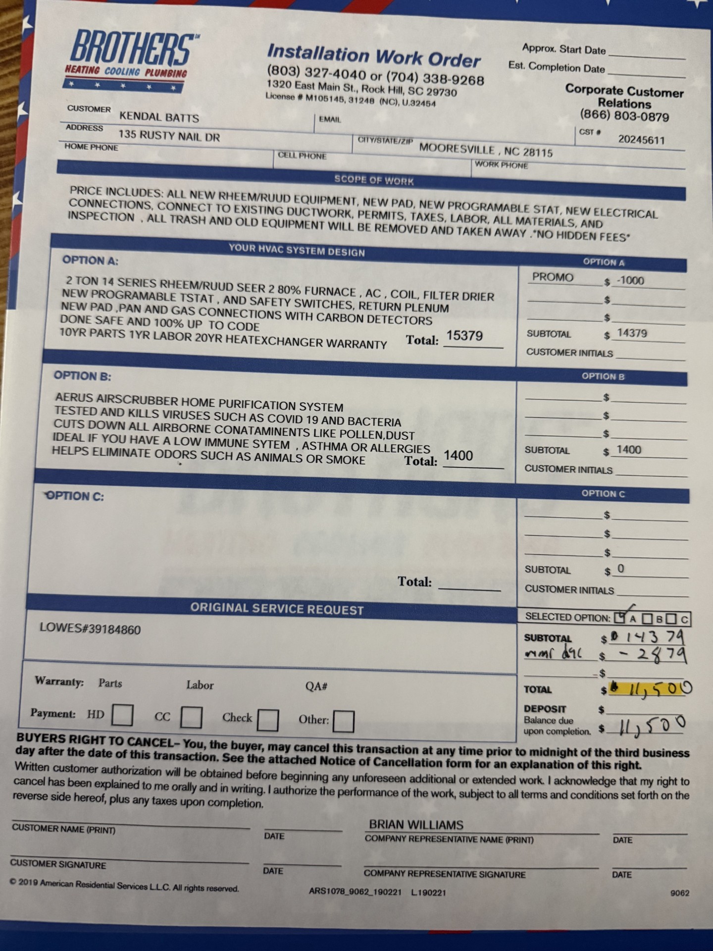Download PDFInvoice from the original HVAC installation through Lowe's.